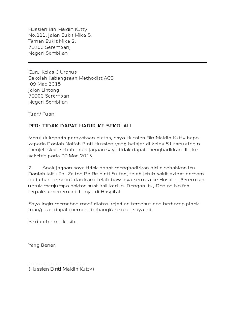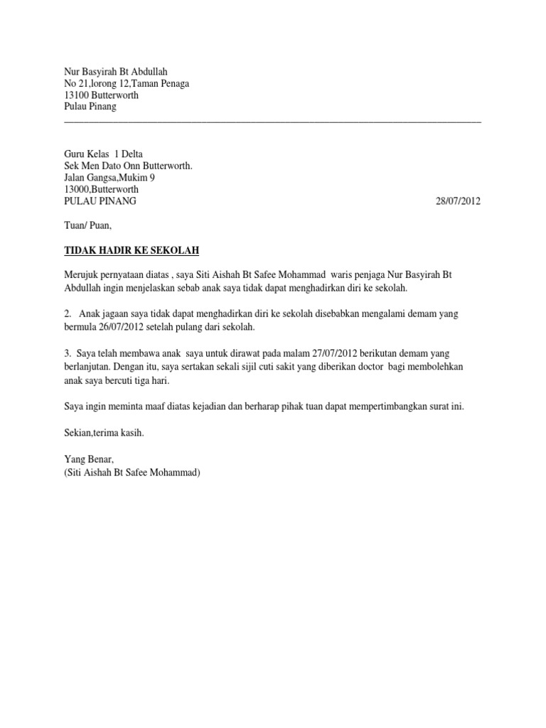 Contoh Buat Surat Sbab Cuti Sakit Written By Kian Tuesday, June 21, 2022 Add Comment Edit Contoh Surat Cuti Sakit Pdf Surat Cuti Sakit Ictl Pdf School Learn English Lettering School Contoh Surat Rasmi Tidak Hadir Ke Sekolah Kerana Sakit Templates Surat Bank Contoh Surat Cuti Sakit Pdf Share this post